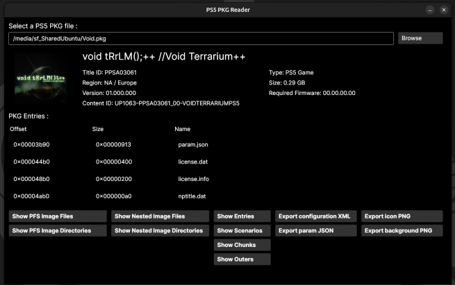 À l’origine, PS5 PKG Reader est une application graphique développée en C#, conçue pour inspecter les packages PKG PS5 sans décryptage. Son objectif n’est pas de contourner les protections de Sony, mais de proposer une lecture claire et légale de tout ce qui est accessible sans clés :